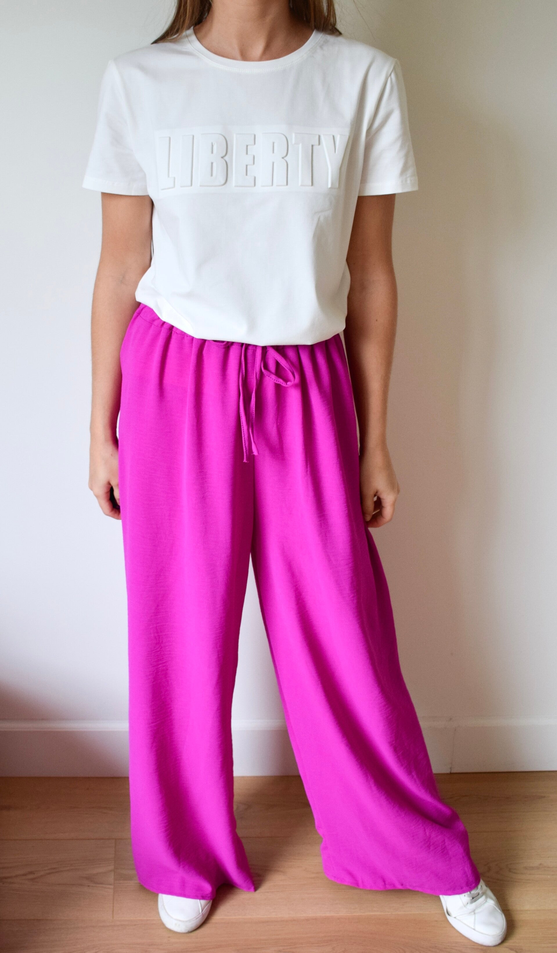 De broek die elk model past! Door de dunnere stof valt de broek mooi soepel en recht naar beneden. Er zit een rekker in die zo'n 30-tal cm kan uitrekken (zie afmetingen).