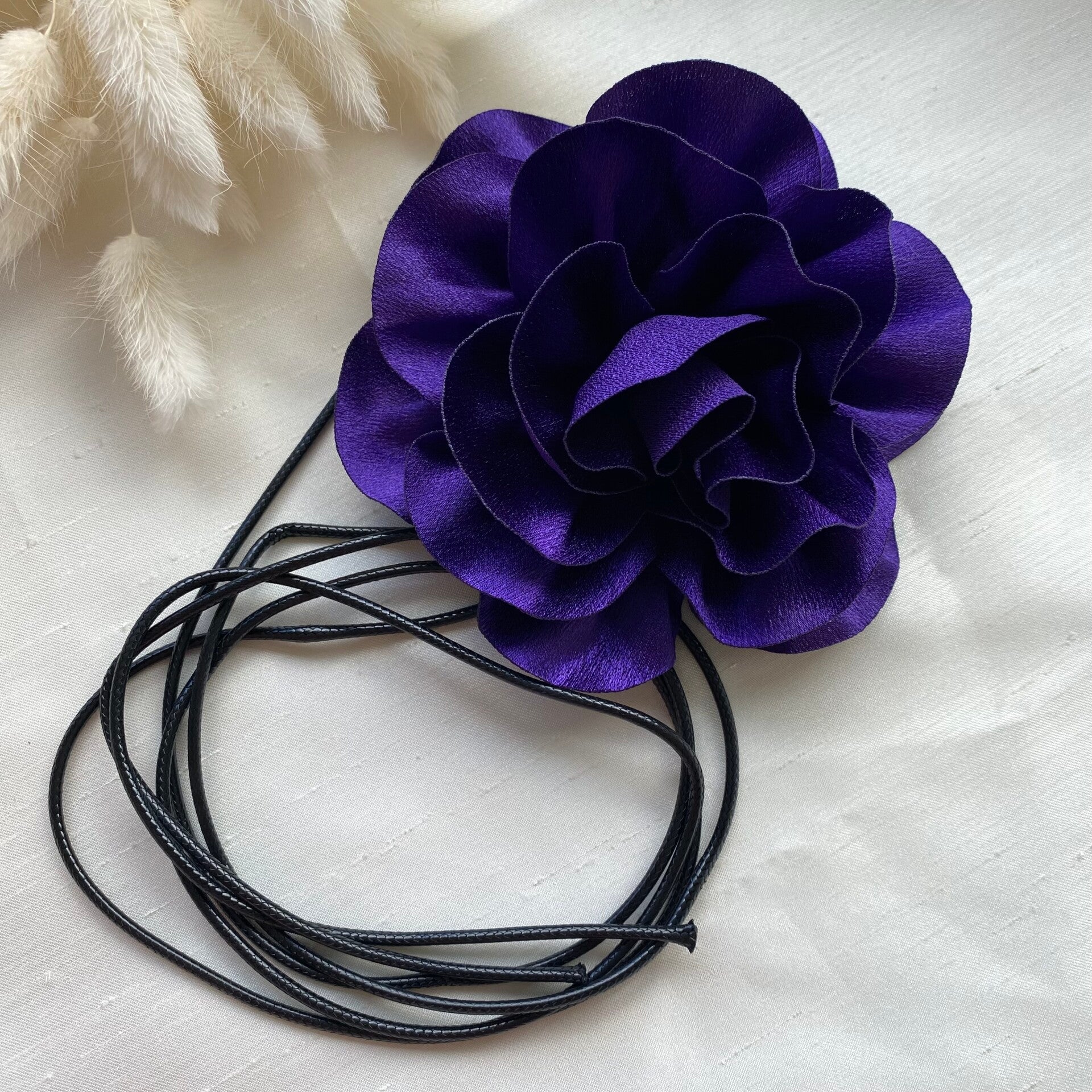 Gebruik hem als riem om een kleedje te accentueren thv de taille, als accessoire thv de nek of verwijder te touwtjes en speld de bloem dmv een veiligheidsspeld (niet bijgeleverd) op als een broche.