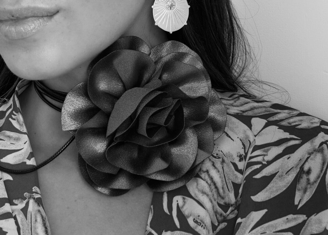 Een grote bloem die je op verschillende manieren als accessoire kan gebruiken om je outfit af te maken.