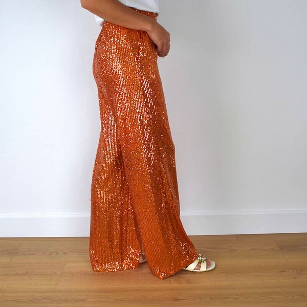 Een prachtige paillettenbroek voor wie comfortabel maar toch schitterend de dag door wil komen.