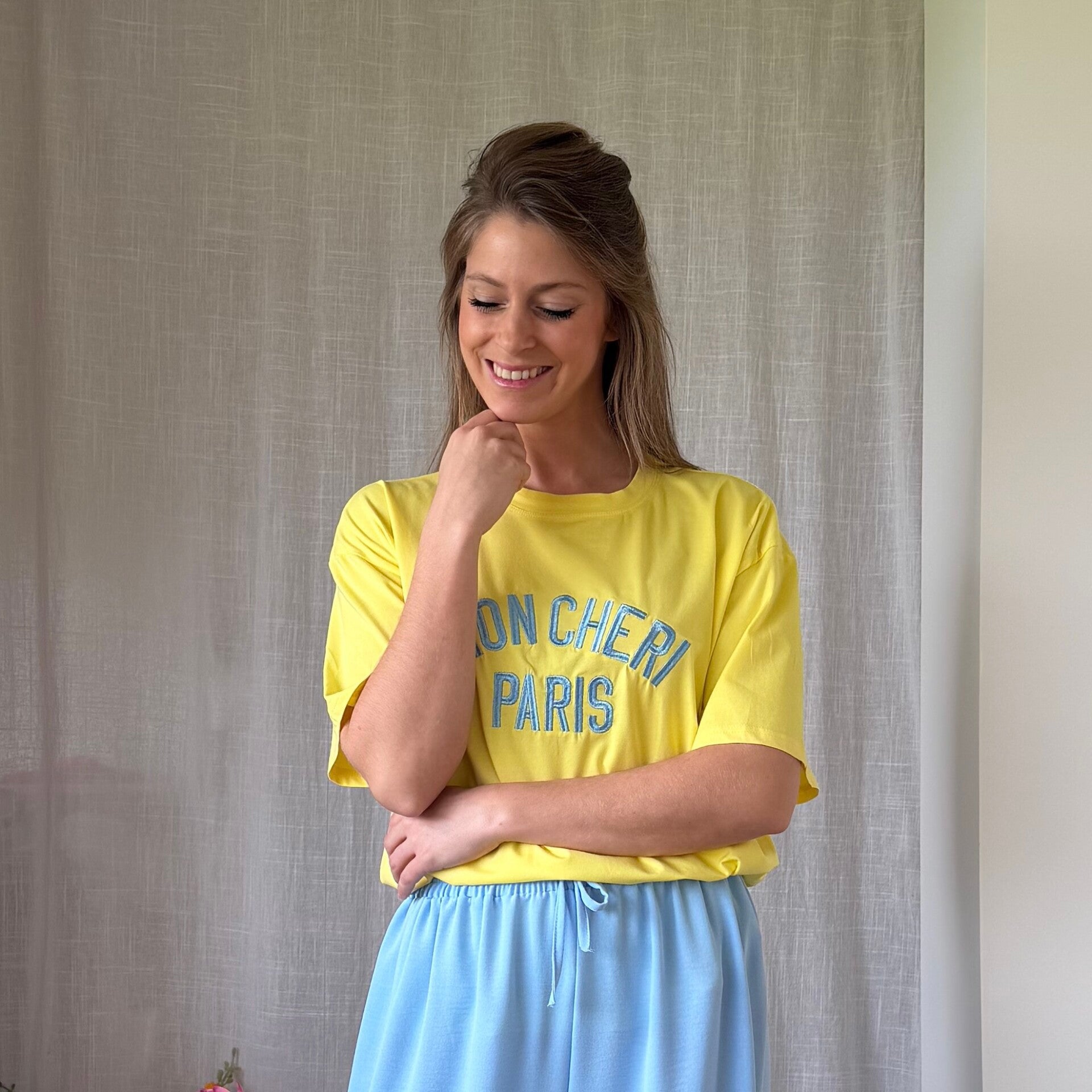 Een prachtige kwaliteitsvolle t-shirt met leuk opschrift in een contrasterende kleur. Ideaal voor wie op zoek is naar iets meer dan een basic t-shirt.