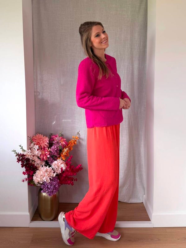 Een simpel teddy jasje in een prachtige fuchsia kleur! Perfect voor de tussenseizoenen en koele zomeravonden.