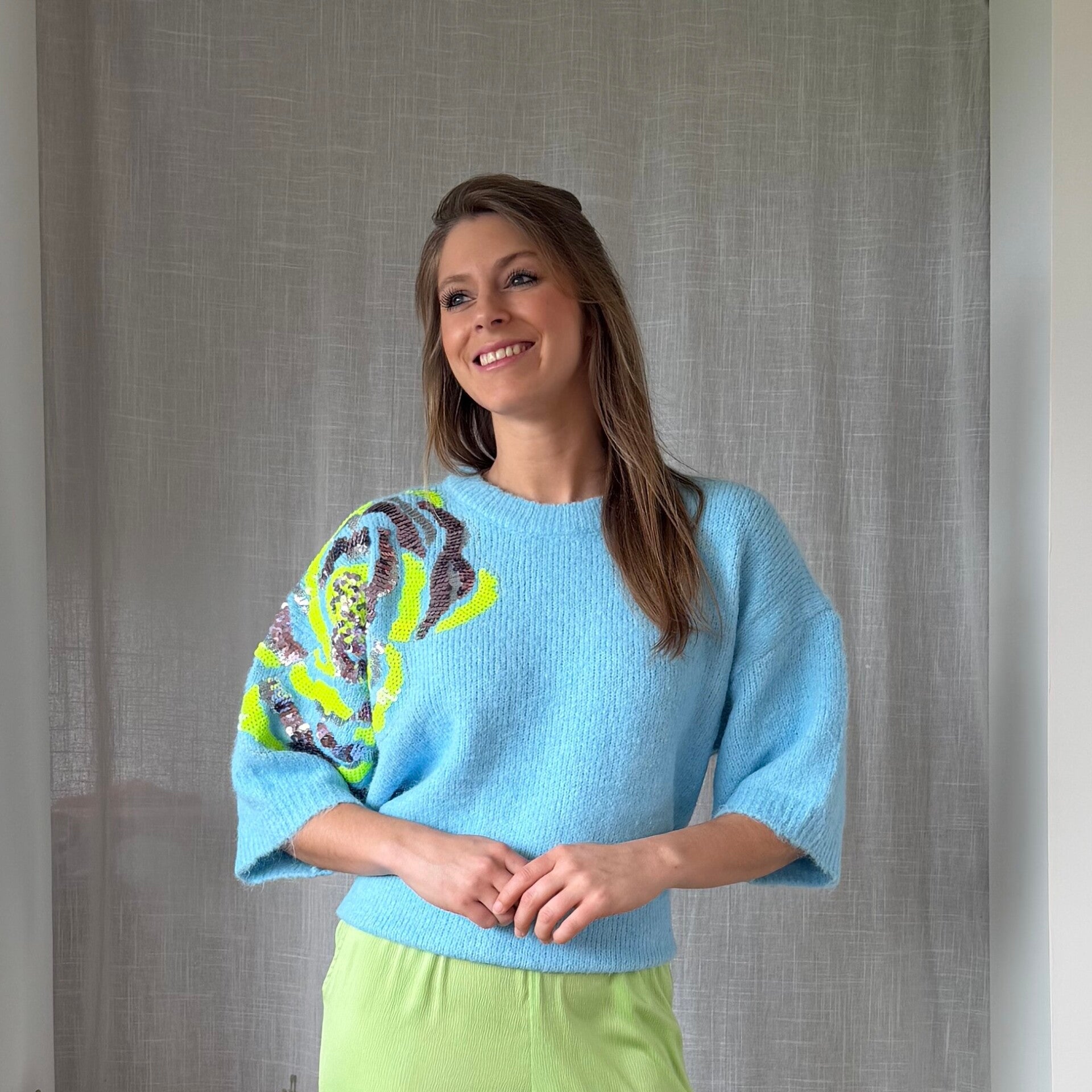 De Kiki-truitjes zijn een kwalitatieve musthave voor iedereen die houdt van dat tikkeltje extra! De basic truitjes zijn elk afgewerkt met een mooie eyecatcher in de vorm van een kleurrijke bloem in pailletten.